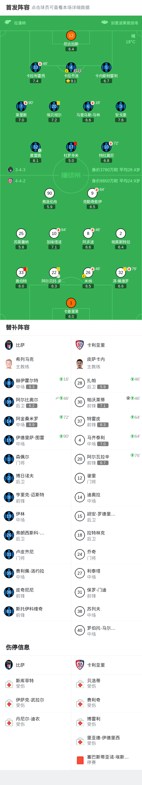 开云手机入口-比萨3-1卡利亚里,卡拉乔洛梅开二度,莫雷奥点射破门